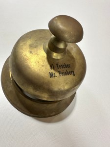 I rang it and said, “I used to. It’s a great bell. But, it says ‘# 1 Teacher: Ms. Feinberg’ on it.”