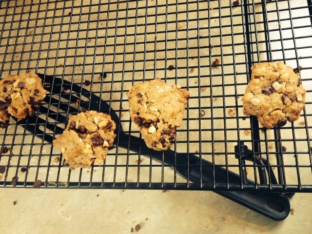 Celebration Slice Two:  I decided to make some oatmeal cookies for a breakfast treat. This was an exercise in patience for sure.  I usually base my cookies off of this recipe,  but for some reason I used this recipe today. With both recipes, I substitute half a banana per egg, and I add chocolate chips to the one that doesn’t have them. Such good cookies, and you can pretend they are a healthy breakfast: gluten free, vegan, oatmeal! (shhh…. we just don’t mention the chocolate chips.)
