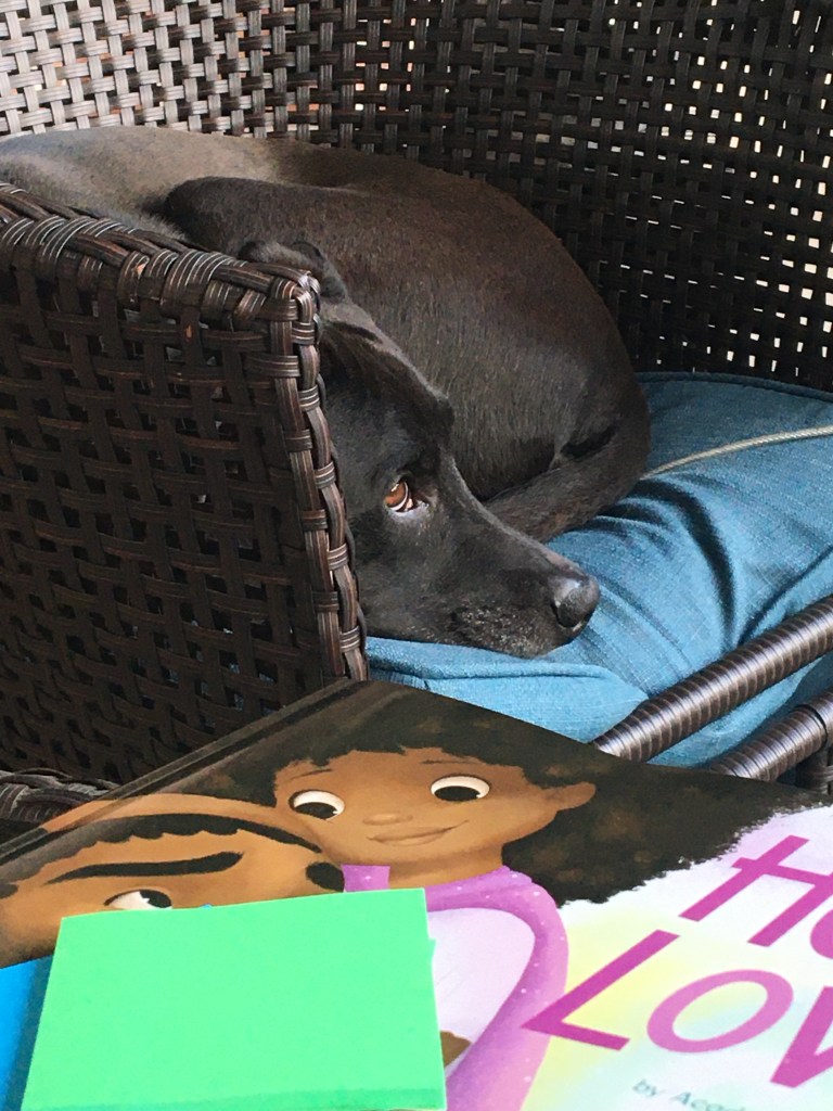 I’m annoyed, but I think there is probably a metaphor for life somewhere here: on my porch with my dog. (A porch pooch!)