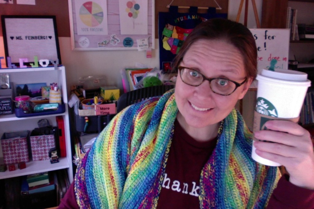 I still had my shawl on, but I should have taken the opportunity to sit with my new back massager… I can’t teach like it’s on fire, but it is heated!