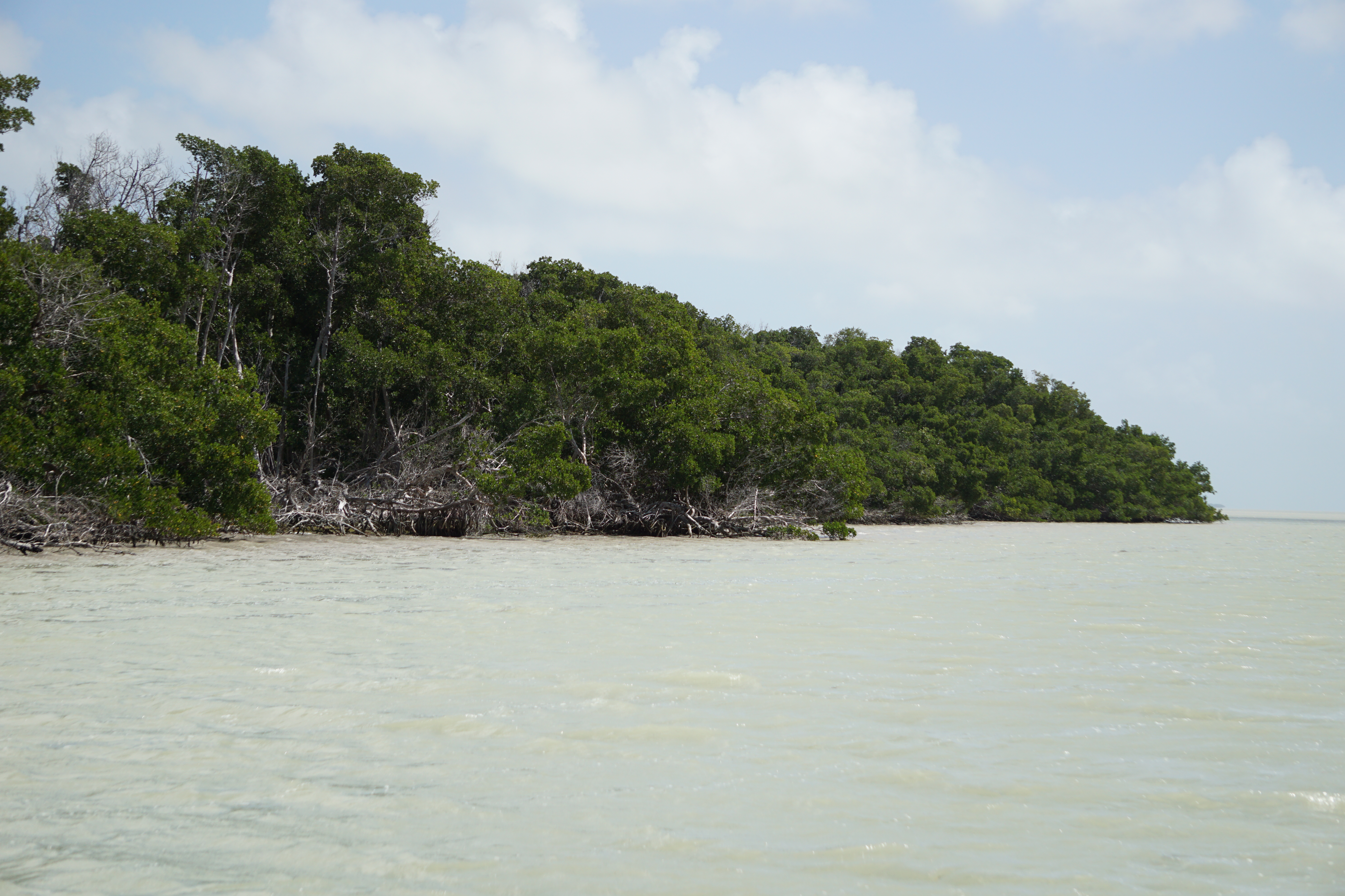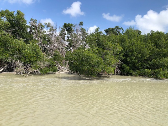 My dad, next to me on the boat asks if this must mean the mangrove islands keep expanding "Oh yes," Captain Al says "Beautiful beaches are temporary."
