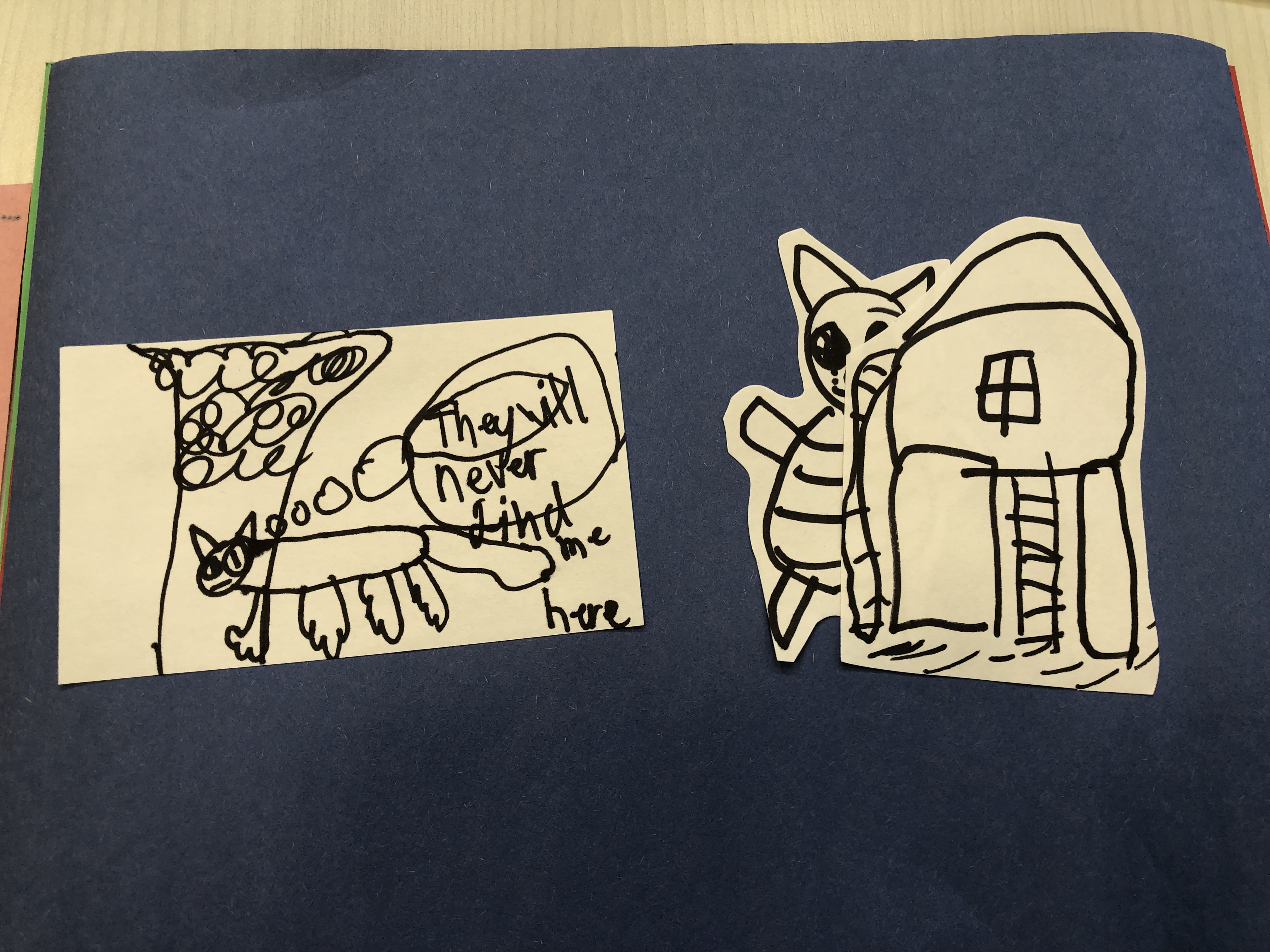 Our new co-writers fit right in. Soon all four of us were drawing, cutting, writing, and making.
