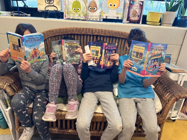 At sharing, he said, “I am reading book four of Lotus Island!”