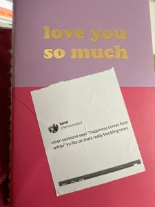I could start to print out funny things and stick them on my kids’ snacks. Or funny reminders stuck to random places.